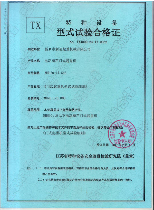 特種設(shè)備型式試驗(yàn)合格證